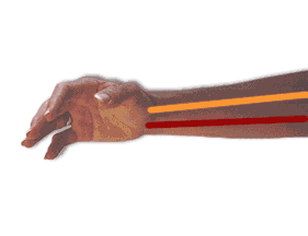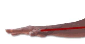 a straight line can be drawn through the center of your forearm, your